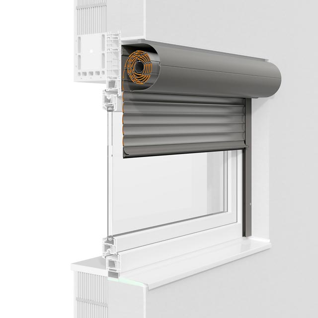 Das Rollladensystem passt sich in die Fassade ein und kann wahlweise mit eckiger oder fünfeckiger Frontblende verwendet werden.