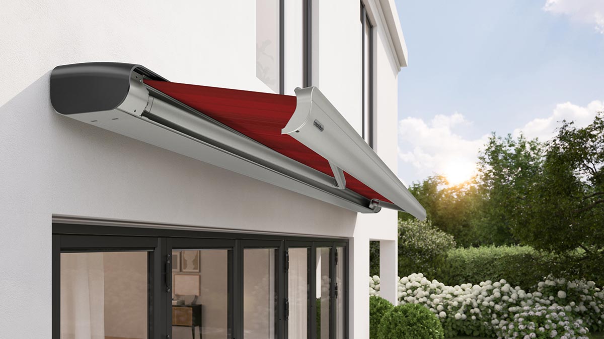 Die Optik einer Kassettenmarkise mit der Leichtigkeit der Halbkassette. Die rund geformte Schale bietet Schutz für das Markisentuch und lässt sich individuell anpassen.